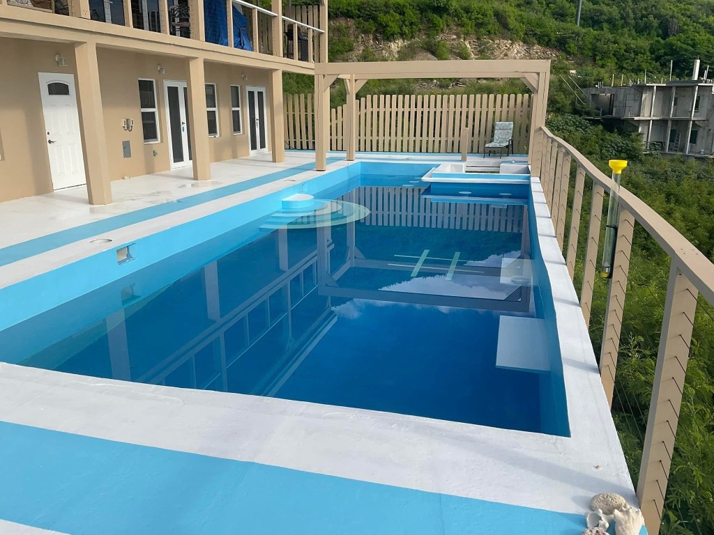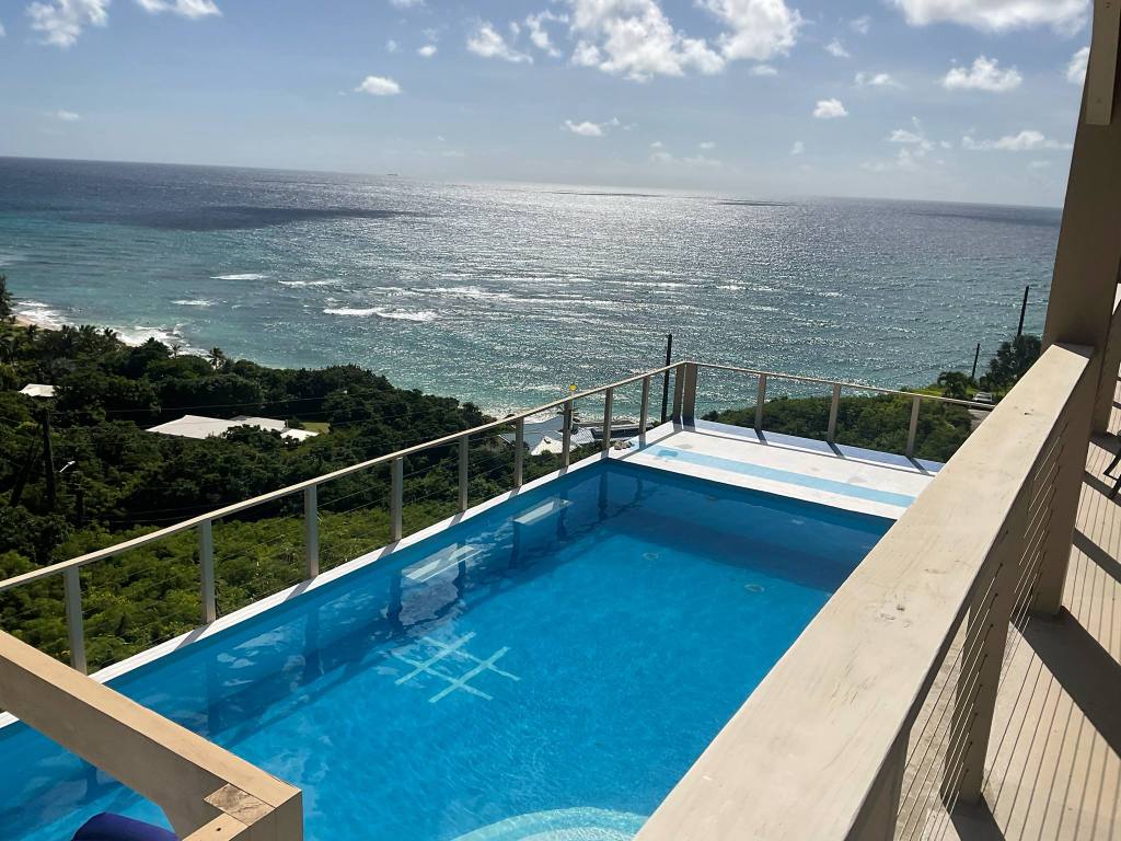 Picture drinking your first cup of coffee, sitting on one of the swing chairs and looking at paradise every day of your vacation! Then hear the calming sounds of the ocean and feel the cool breeze! The most common comment first said by most of our guests who have visited this wonderful house named Kerribeanview on the east side of the beautiful island of St Croix, Virgin Islands is exactly this ” What a view! And the next thing most of our guests do is send pictures to all of their friends and family making them envious! Or maybe you wake up in the morning and decide to put your swim suit on and go outside your bedroom door and jump right in the pool! It has a pool bar and drinks and beverages can be served to you without getting out of the water!