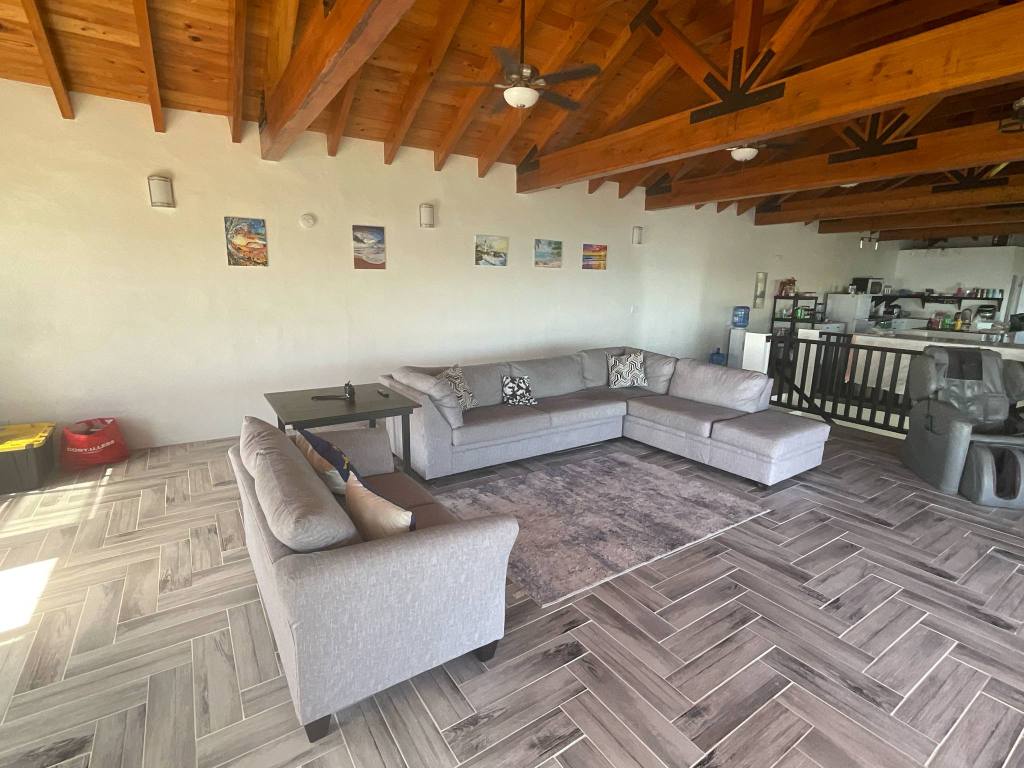 A spacious wide open living room area and kitchen area are another unique feature of the house. The open doors to the upper deck provide a wonderful view, and the sound of the ocean and cool breeze also!