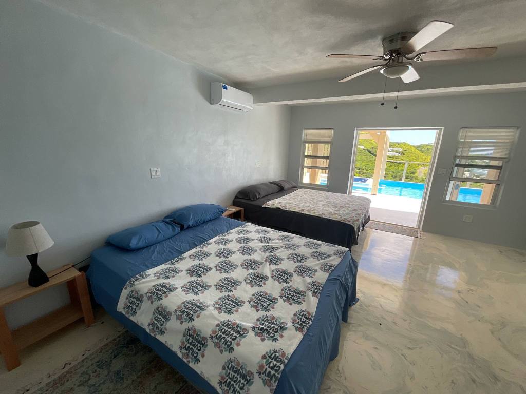 The house has four large bedrooms, each with its own shower and bathroom and door that lead to the pool. Two have a king bed and two rooms have two Queen beds. The sleeping capacity of the house is fourteen people. The King bedrooms have their own mini fridge and microwaves, along with a coffee maker. Again each room in the house leads out to a beautiful view of the oceans and the wonderful ocean sounds and breeze!